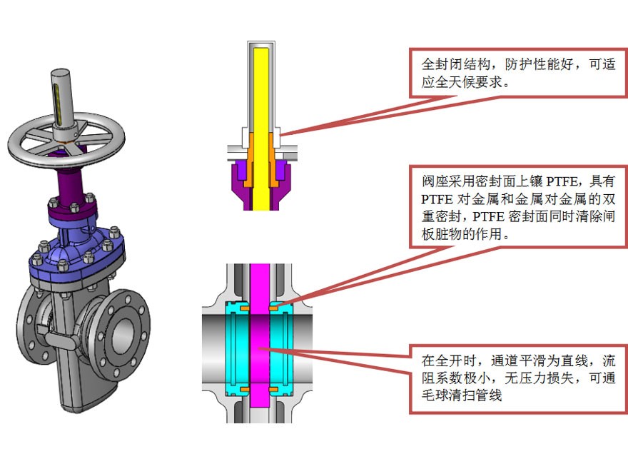 自清潔功能。閥門開(kāi)關(guān)時(shí),閥座圈能自動(dòng)清潔閘板兩側(cè);