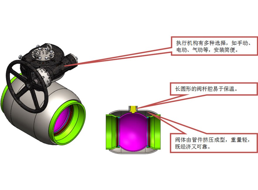 直埋式全焊接球閥由全焊接閥體和碳纖維增強(qiáng)特氟隆密封圈組成,有手動、電動、氣動等多種驅(qū)動方式,閥門可以直接埋于地下,不需建高大型閥門井,只需在地面上設(shè)置小型淺井,大大節(jié)省施工費(fèi)用及工程時間;