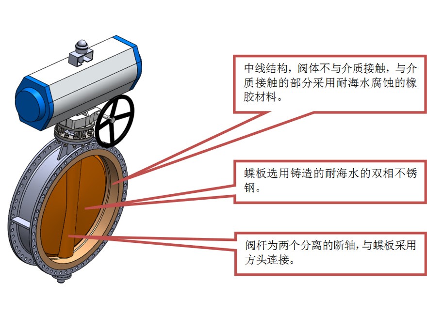 中線襯膠結(jié)構(gòu),閥門的操作力矩小,氣動執(zhí)行機構(gòu)操作,動作迅速;