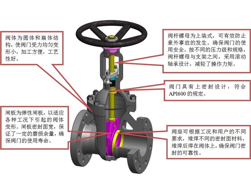 閥體為圓體和扁體結(jié)構(gòu),使閥門受力均勻變形小,加工方便,工藝性好;