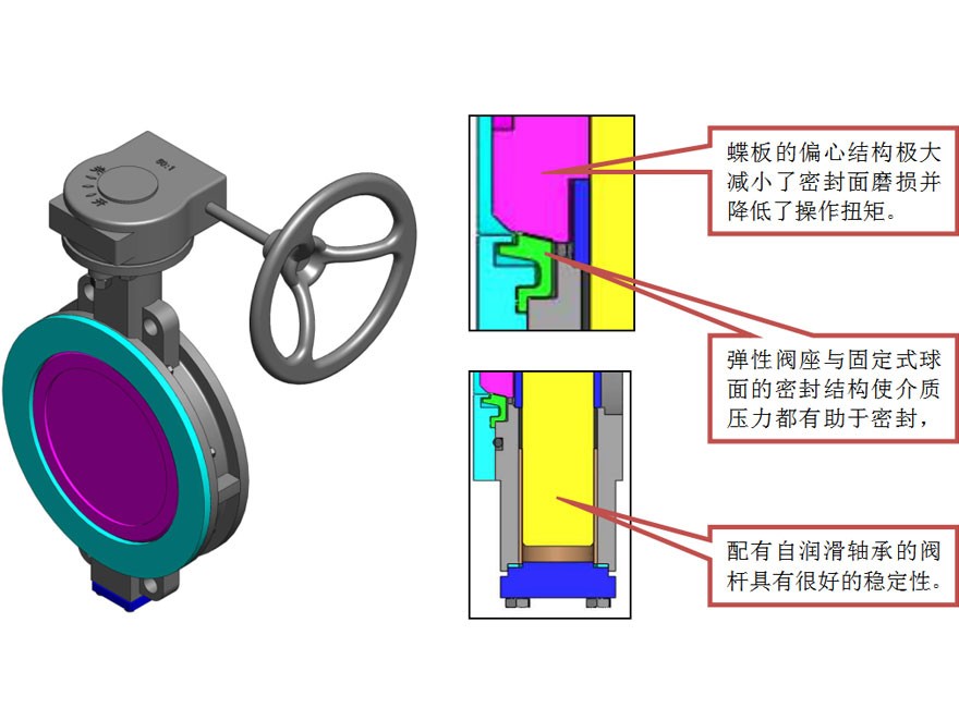 彈性閥座與固定式球面的密封結構,使介質壓力都有助于密封,達到雙向密封零泄漏;