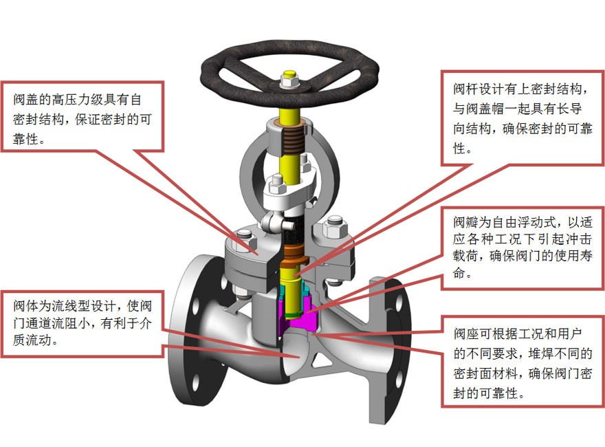 閥體為流線型設(shè)計(jì),使閥門通道流阻小,有利于介質(zhì)流動(dòng);