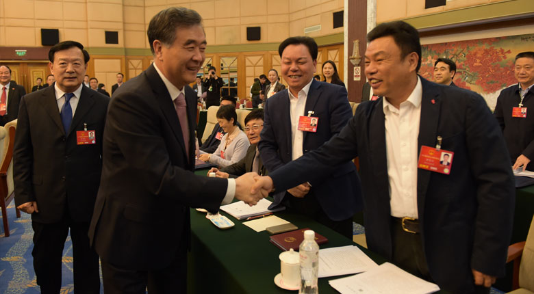 中共中央政治局常委、全國政協(xié)主席汪洋在第十二屆全國人大四次會(huì)議期間親切接見全國人大代表黃作興。